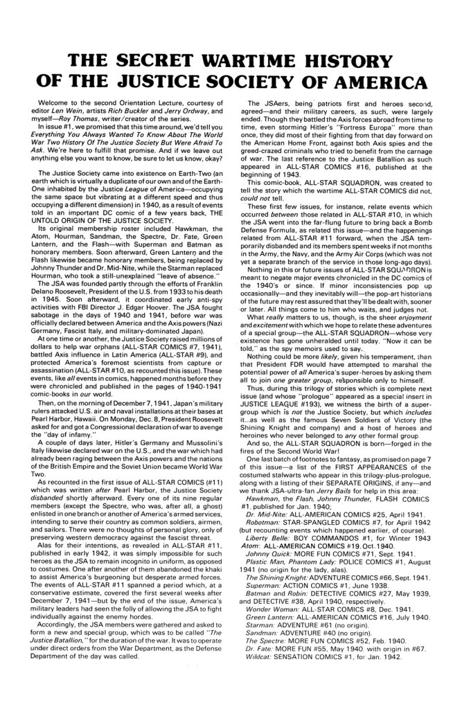 Liberty Belle calls a briefing at the Perisphere of the All-Stars who are in town. She reminds those present not to be tempted to run off (she especially eyes the Flash and Johnny Quick) to the European or Pacific theatres because of the sphere of influence over both places–which could render invading powered heroes subject to Nazi command! She also briefs the remaining All-Stars on the recent run-in with Fausta Grables and the nefarious plans of Baron Blitzkrieg. Further, she reminds everyone the Mister Who is at large, and looking to score a huge payday to fund his research. Lastly, she mentions the theft of the Kalpa Vigraha from a monastery in the Himalayas–an ancient Hindu statue that commemorates Shiva, and one of the oldest religious artifacts in the world! With that, the briefing comes to an end.